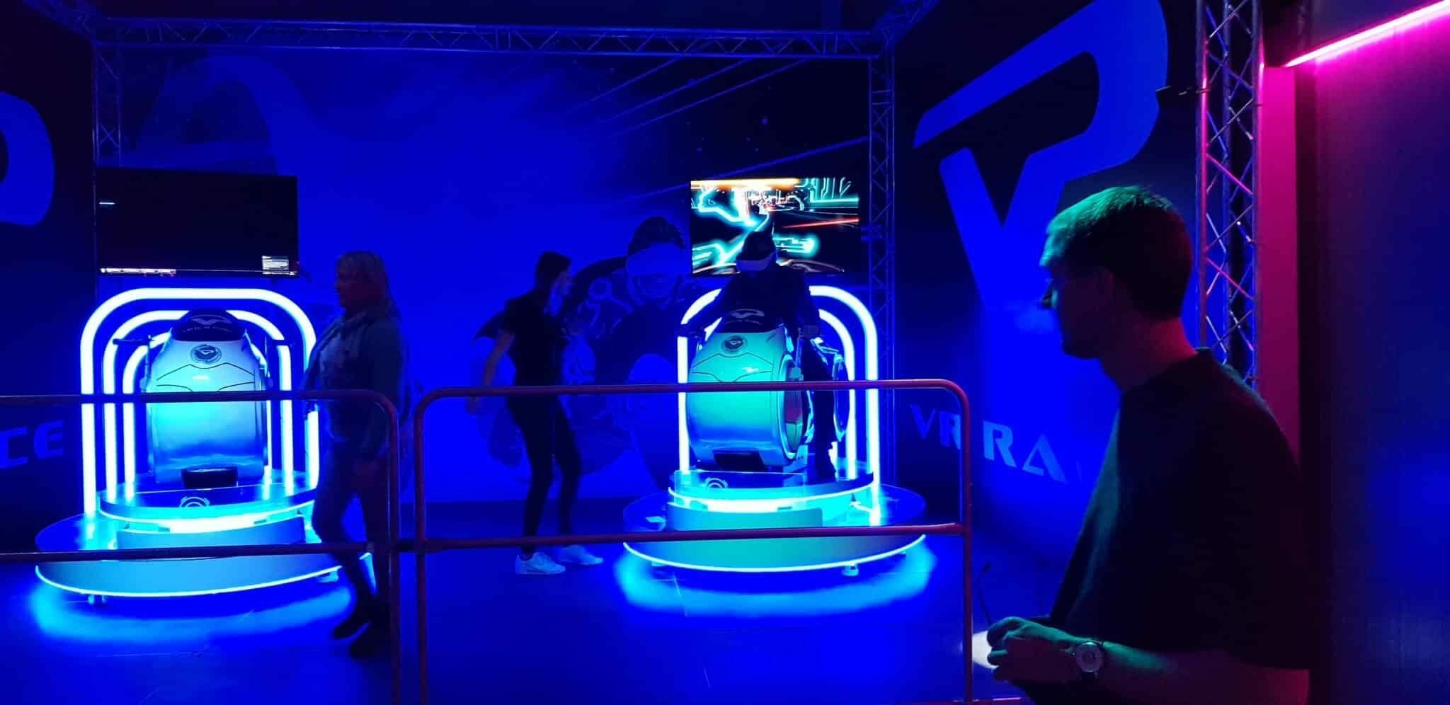 Don your suit, virtual reality helmet and jump on your racing bike. The track awaits you! In V-Race visitors step into the shoes of a futuristic motorcycle rider.